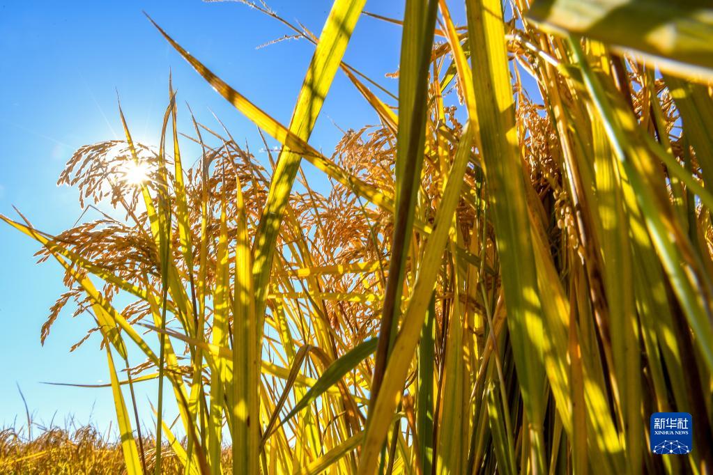 这是2021年10月12日在吉林省吉林市永吉县万昌镇拍摄的水稻。新华社记者 张楠 摄